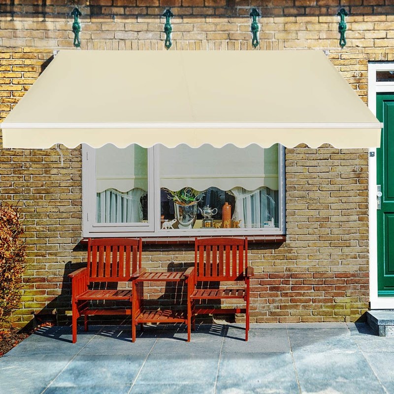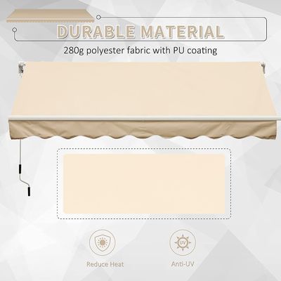 Aluminum with powder coating, The fabric is polyester cloth with Smoothly operate by manual crank.